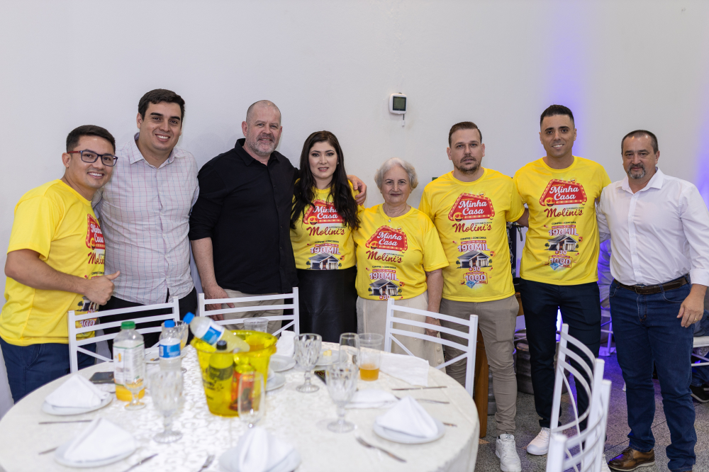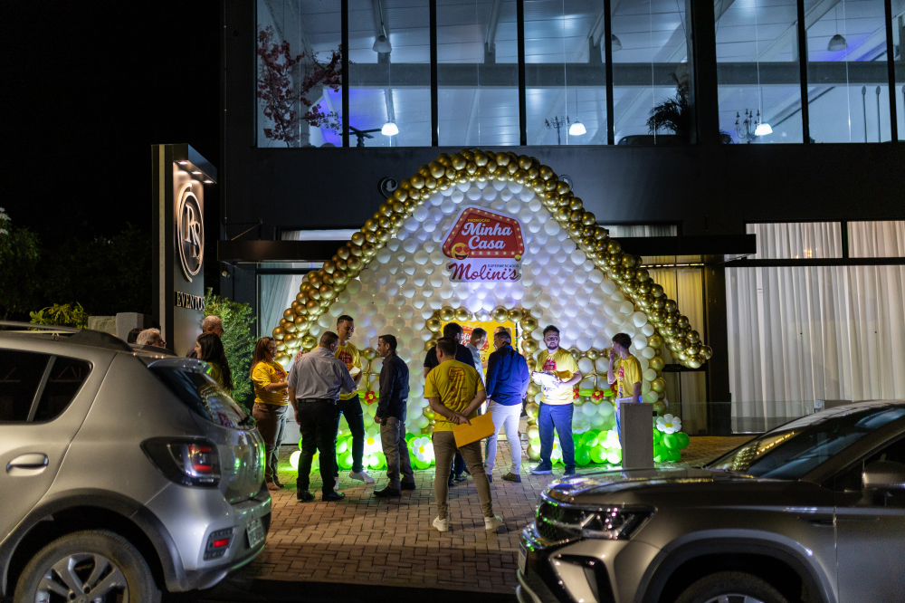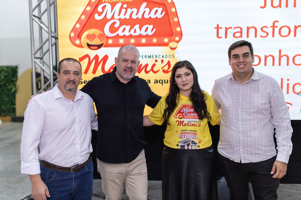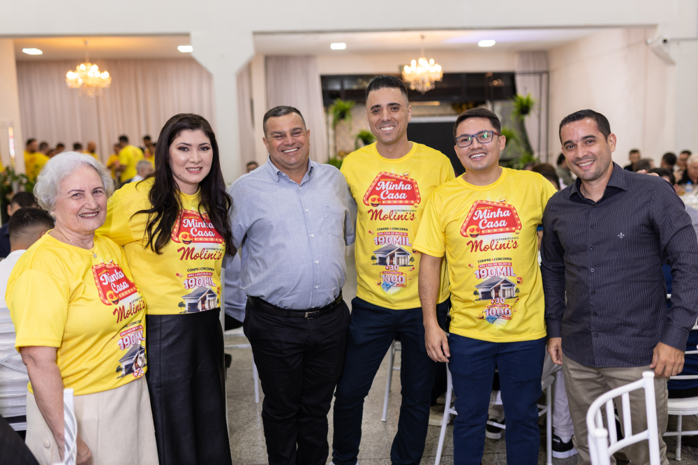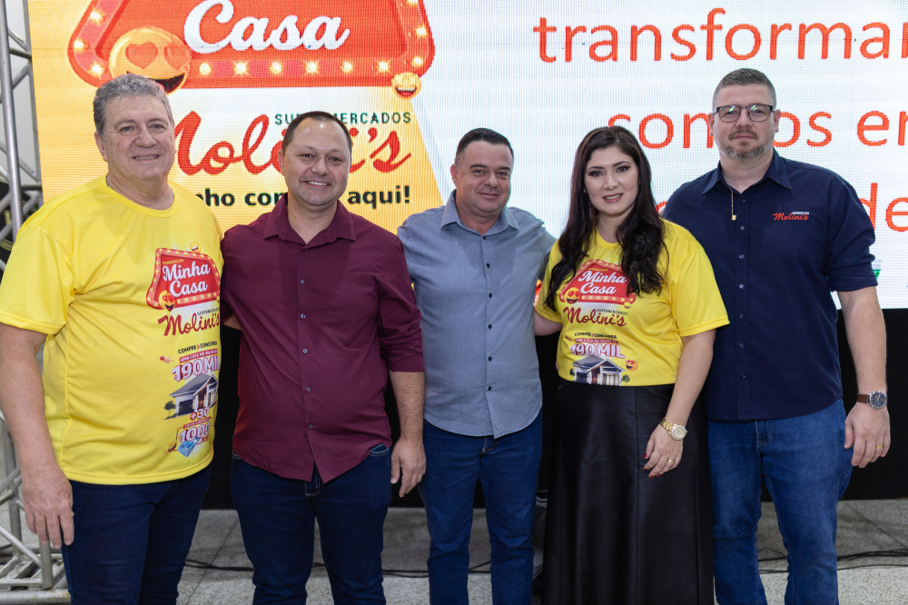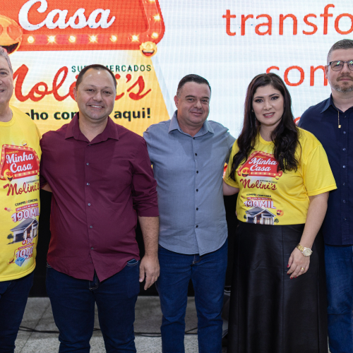 O Grupo Molini’s Supermercados promoveu, na noite de quinta-feira (18), um coquetel especial no espaço Roberta Stradiotto Eventos, em Jacarezinho, reunindo cerca de 150 fornecedores, além de representantes das áreas comercial, marketing, diretoria e gerência. O encontro marcou o lançamento oficial da campanha 2025/2026, presente nas unidades de Jacarezinho, Santo Antônio da Platina, Cornélio Procópio e Bandeirantes, que traz a promoção “Minha Casa”, com prêmios que prometem impactar a vida dos consumidores.