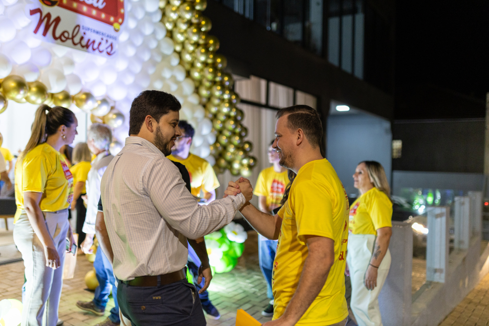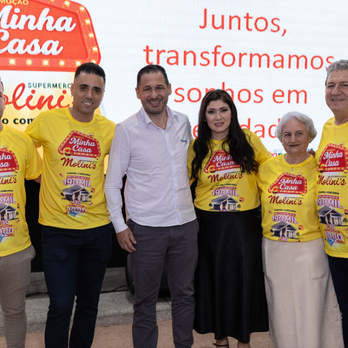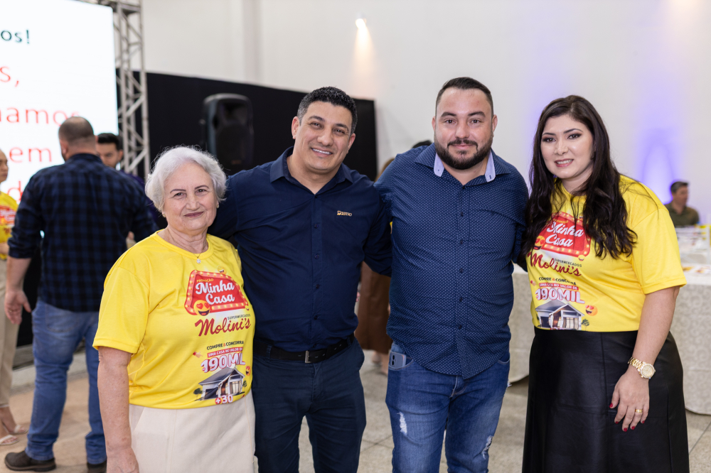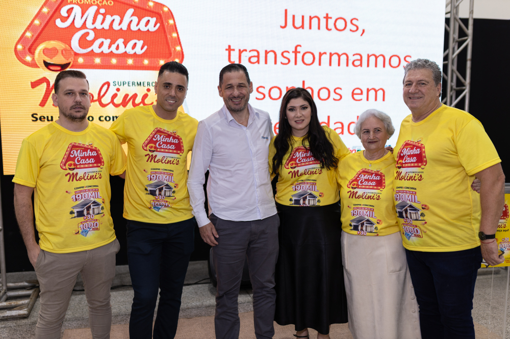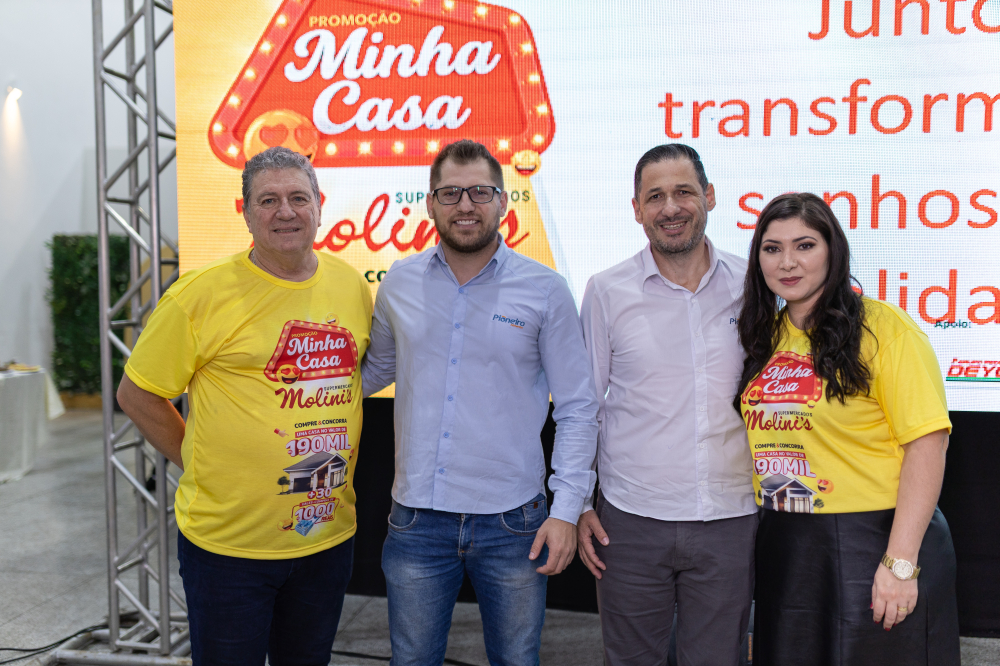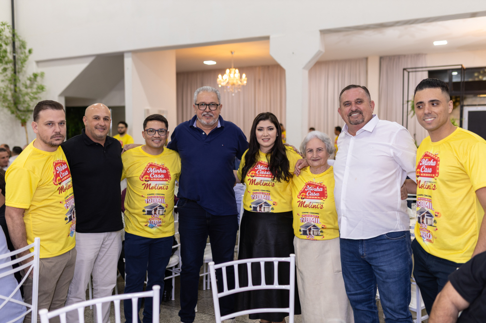 O Grupo Molini’s Supermercados promoveu, na noite de quinta-feira (18), um coquetel especial no espaço Roberta Stradiotto Eventos, em Jacarezinho, reunindo cerca de 150 fornecedores, além de representantes das áreas comercial, marketing, diretoria e gerência. O encontro marcou o lançamento oficial da campanha 2025/2026, presente nas unidades de Jacarezinho, Santo Antônio da Platina, Cornélio Procópio e Bandeirantes, que traz a promoção “Minha Casa”, com prêmios que prometem impactar a vida dos consumidores.